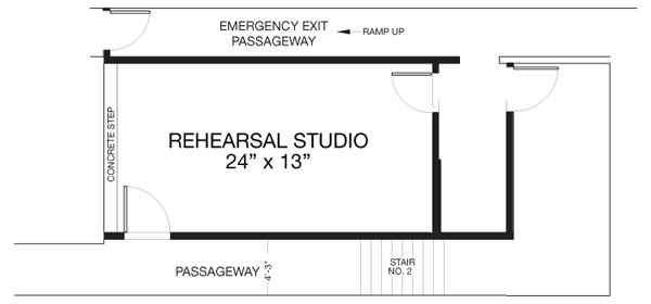 The studio is available for rehearsals, auditions, readings with invited audience, classes, workshops, etc., Monday through Friday, 10:00am – 6:00pm. Rental after 6:00pm may be available depending on the nature of usage. Please note that the entrance door of Dixon Place is ALWAYS locked during the day. For large groups and auditions, a door person must be provided to receive all members of the group.