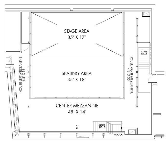 Stage dimensions: 35′ x 20′ (dependent on seating arrangement)